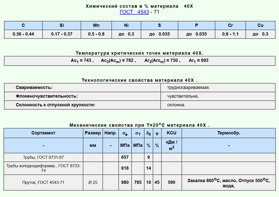 Заменитель: 45Х, 38ХА, 40ХН, 40ХС, 40ХФ, 40ХР